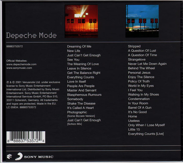 The Singles 81>85 1-01 Dreaming Of Me3:461-02 New Life3:451-03 Just Can’t Get Enough3:441-04 See You3:571-05 The Meaning Of Love3:051-06 Leave In Silence4:021-07 Get The Balance Right3:151-08 Everything Counts3:591-09 Love In Itself4:001-10 People Are People3:461-11 Master And Servant3:471-12 Blasphemous Rumours5:091-13 Somebody4:221-14 Shake The Disease4:491-15 It’s Called A Heart3:511-16 Photographic (Some Bizzare Version)3:131-17 Just Can’t Get Enough (Schizo Mix)6:46 The Singles 86>98 2-01 Stripped3:512-02 A Question Of Lust4:302-03 A Question Of Time4:002-04 Strangelove3:472-05 Never Let Me Down Again4:222-06 Behind The Wheel4:022-07 Personal Jesus3:462-08 Enjoy The Silence4:162-09 Policy Of Truth5:142-10 World In My Eyes3:573-01 I Feel You4:353-02 Walking In My Shoes5:023-03 Condemnation3:233-04 In Your Room4:503-05 Barrel Of A Gun5:273-06 It’s No Good5:593-07 Home5:463-08 Useless4:533-09 Only When I Lose Myself4:413-10 Little 154:133-11 Everything Counts (Live)6:38
